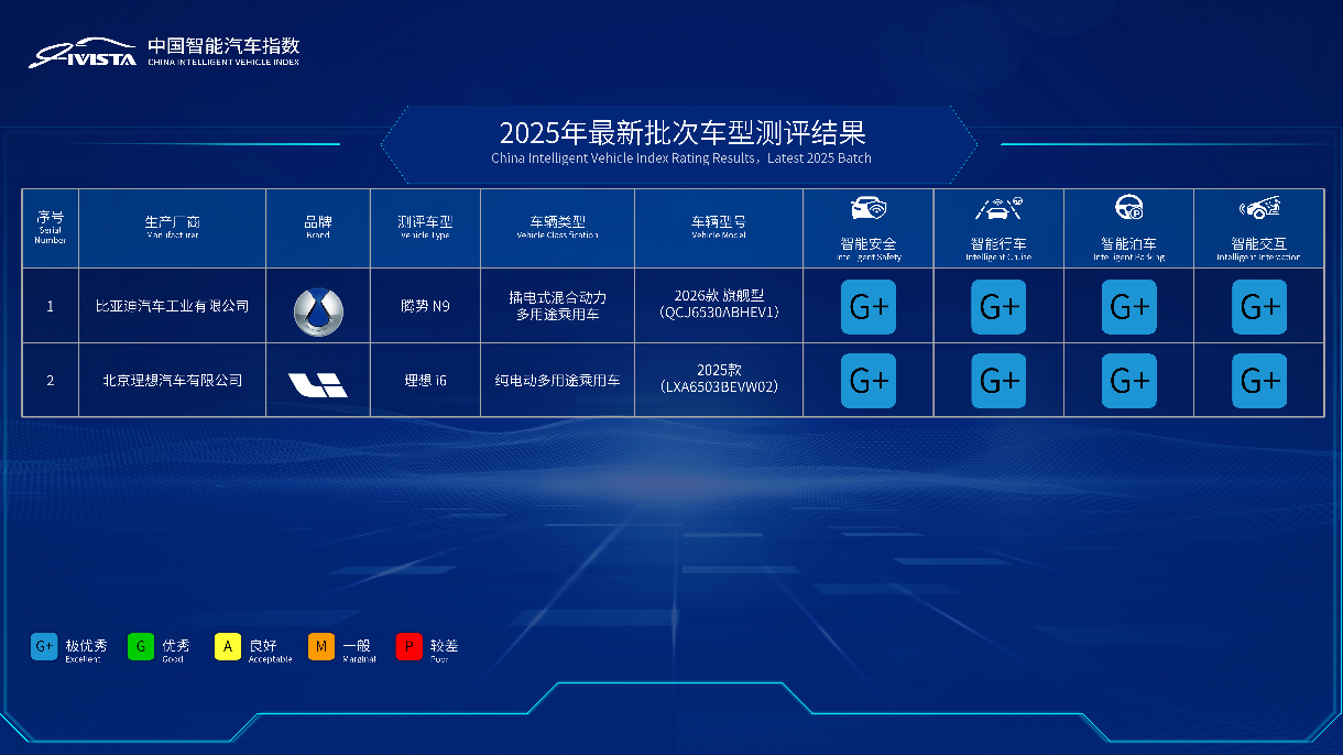 两款车型在智能安全、智能行车、智能泊车、智能交互四项分指数获得G+评级。