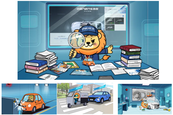 “科技向善”,成于普及与沟通。为了让专业测评技术走出实验室、融入公众认知,汽车指数全力打造“公共科普”新生态。我们创新推出科普IP形象——汽车指数大真探“小狮指”。该形象以“狮子”为原型,头戴侦探帽、手持放大镜,通过生动的人格化表达,拉近与公众之间的情感距离。运用AI创意构思,“小狮指”衍生出“安安”“智智”“康康”三个子形象,分别对应安全、智能、健康三大指数体系,将严谨的测评工程师角色转化为公众可亲近、可记忆的科普伙伴。
